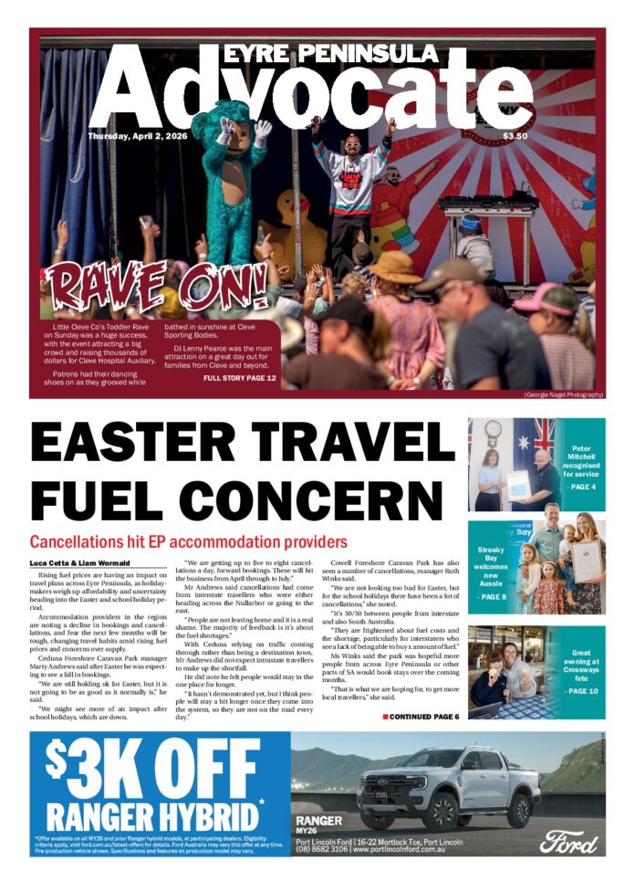 Eyre Peninsula Advocate Cleve – 2nd April 2026 Subscribe or Login to see the rest of the content. Username Password * Remember Me Forgot Password News Clinic to care for EP 25/04/2026 Port Lincoln Skin Cancer Clinic is set to save many lives, led by highly experienced doctor/surgeon Zac Baran. Located at 4 Boston Street, Port Lincoln,... Cummins and Yeelanna honour service efforts 25/04/2026 Cummins and Yeelanna community members came together to honour past and present service men and women this Anzac Day. At 6.30am people of all... Ceduna hails ‘spirit of sacrifice’ on Anzac Day 25/04/2026 The Ceduna community came together on Saturday morning to honour those who fought and died for Australia at the annual Anzac Day dawn service. A...