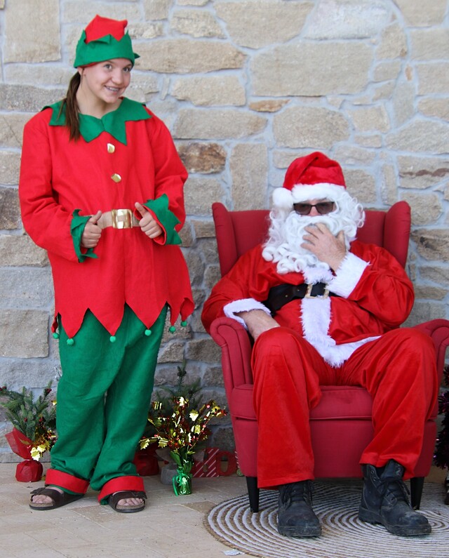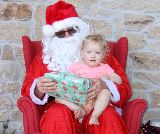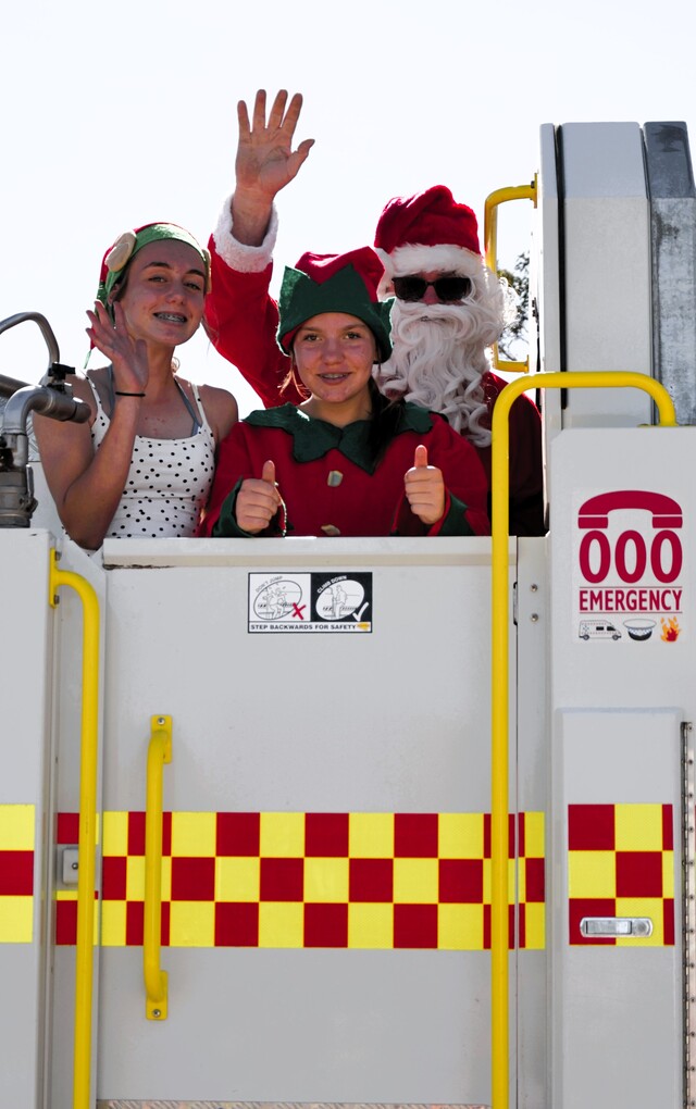 Father Christmas arrived at the Lock Christmas Tree on a Country Fire Service truck, with helpers Indi Morton and Rosie Bowey on board.