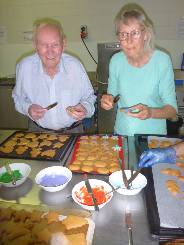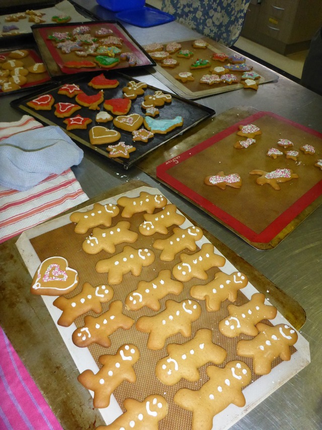 They then worked together to roll out biscuit dough, cut them out in traditional Christmas shapes and bake them.