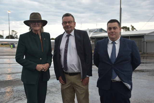 Governor-General Sam Mostyn, Ceduna Mayor Ken Maynard and acting chief executive officer Ben Taylor. (Luca Cetta: 511956_03)