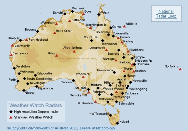 A map showing radar locations across the country. (Bureau of Meteorology)