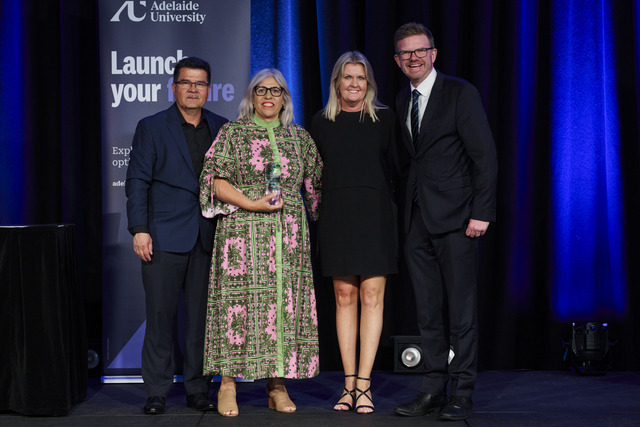 Trachoma senior project officer Carlos Hernandez, Eyre and Far North Local Health Network director of Aboriginal Health Sharon Bilney, chief executive officer Julie Marron and Health Minister Chris Picton at the awards. (Supplied)