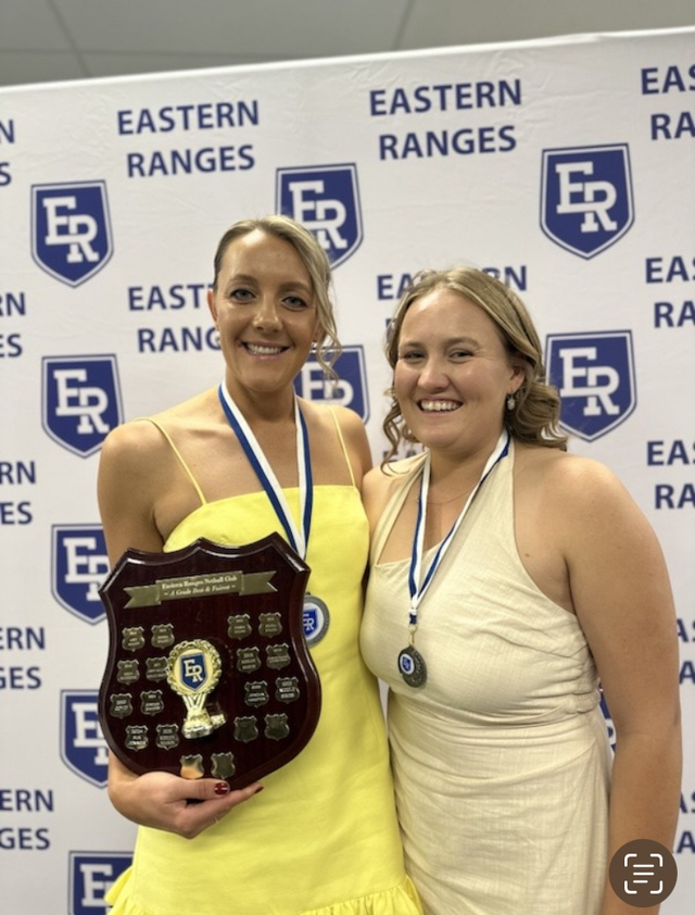 Eastern Ranges 2025 A grade netball best and fairest Keeley Mason and runner-up best and fairest and best team player Casey O’Toole. (Zoe Haines-Darby)