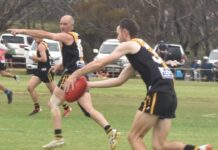 Two Kimba Districts’ football stalwarts brought up big milestones in Saturday’s A grade grand final.